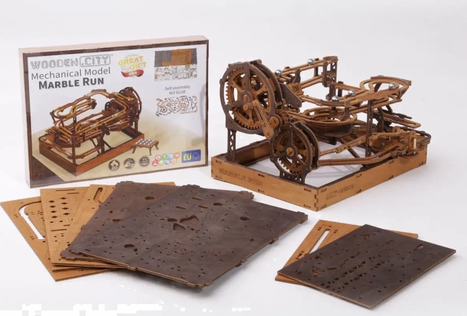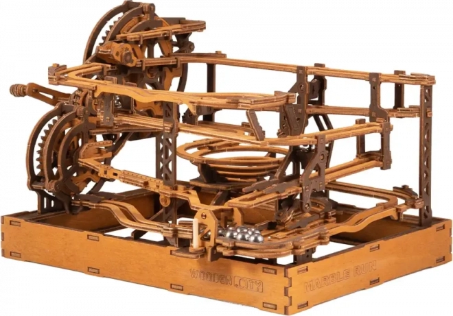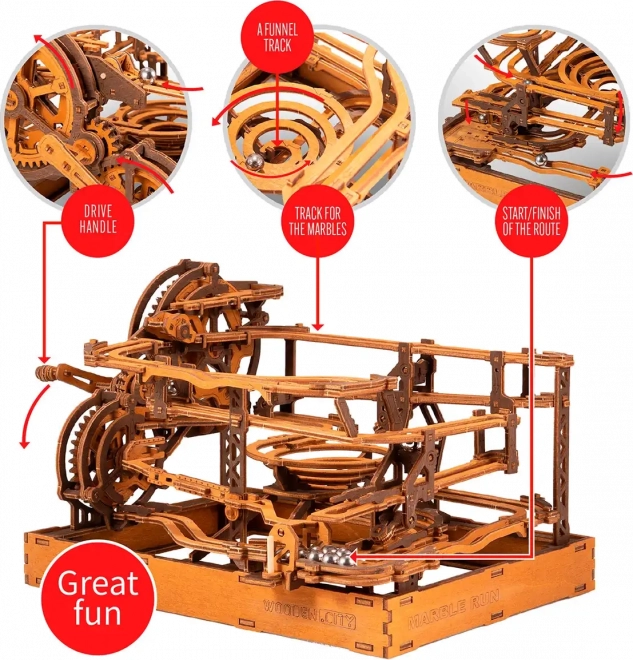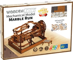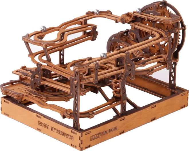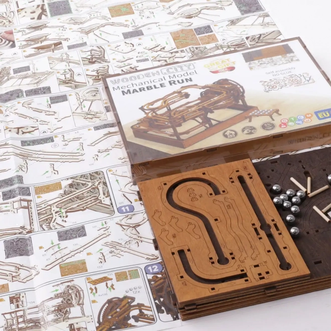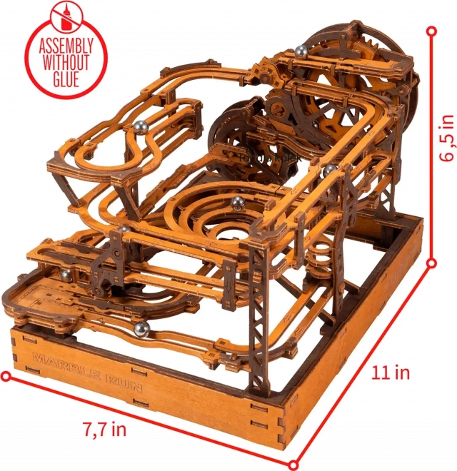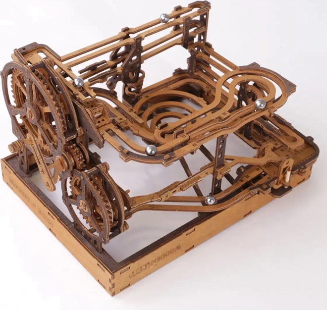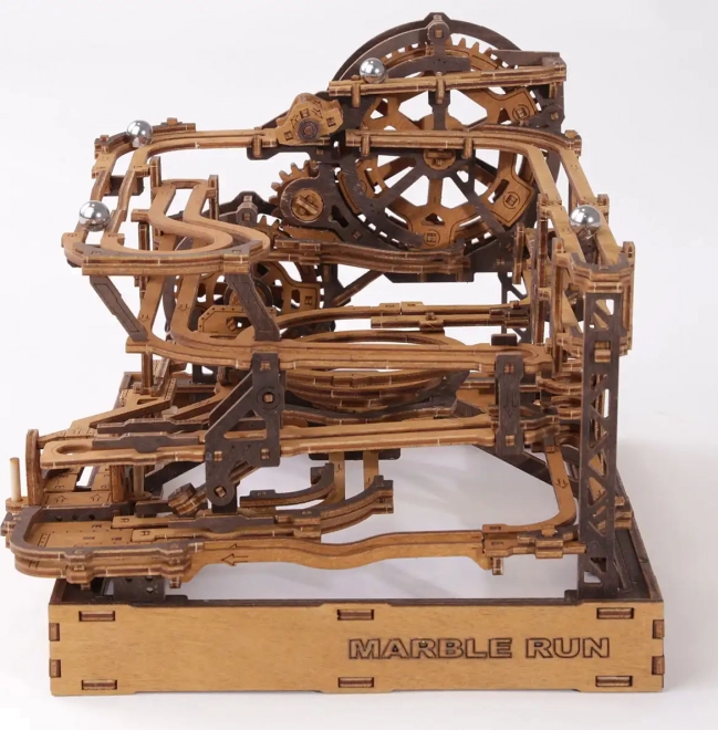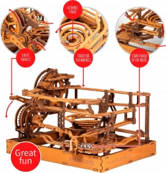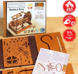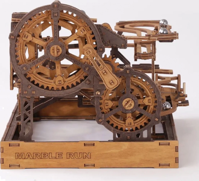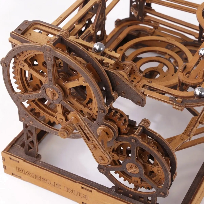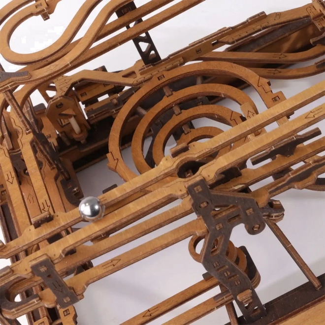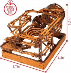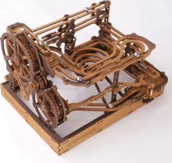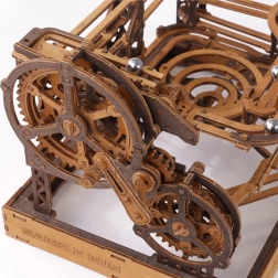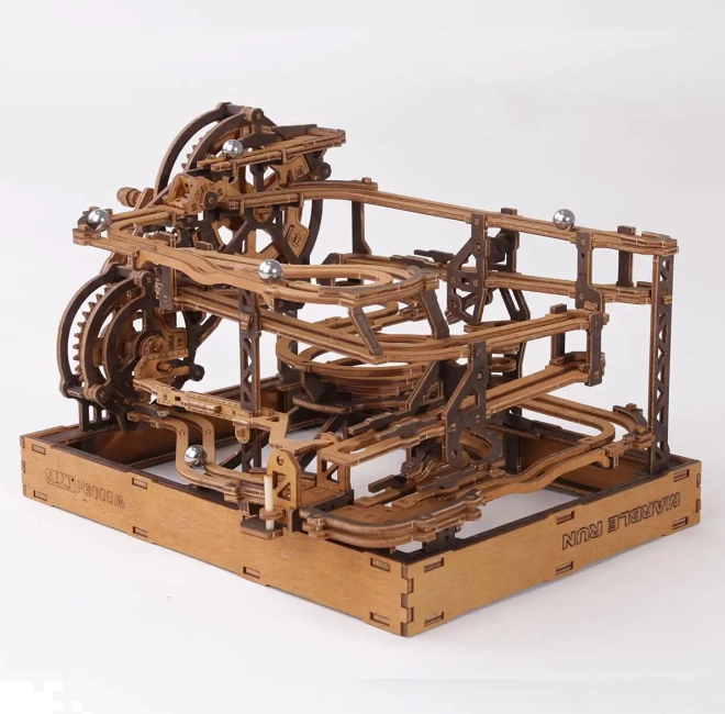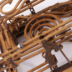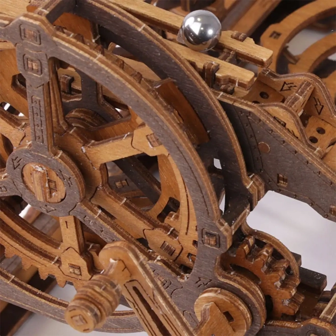 Ez a 3D fa puzzle nemcsak díszíti a belső teret, hanem órákon át tartó szórakozást és kihívást is nyújt. Ökológiai nyírfalemezből készült, amely magas sűrűségű, és megköveteli a gondolkodást és az ügyességet az építés során. A design egy működő mechanizmust szimulál, ahol fémgolyók járnak végig a részletesen kidolgozott pályákon.