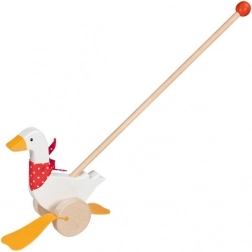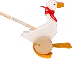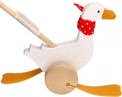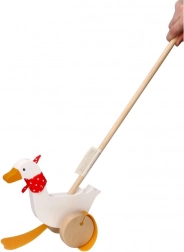 A Berta gyerek liba minőségi fából készült, klasszikus megjelenésével – piros, pöttyös kendő és jellegzetes „úszólábak” – tolás közben bájosan mozog. A hosszú rúd megkönnyíti a játék irányítását és ösztönzi a gyerekek aktív mozgását.