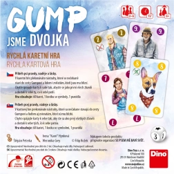 Szórakoztató úti kártyajáték a Gump: Ketten egy pár vagyunk világából, amely jó embereket és állatokat köt össze izgalmas versenyben: ki szabadul meg elsőként az összes lapjától. A játékosok taktikusan tesznek lapokat a közös paklira, kihasználják a kockadobást és az átgondolt kombinációkat. A játék 6 éves kortól ajánlott, 2–6 játékos részére, gyors, 15 perces játékidővel, és Magyarországon készült.