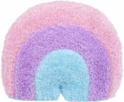 Plüssjáték szivárvány formában, rózsaszín, lila és kék színben, barátságos mosollyal. Ideális dekorációnak vagy gyerekeknek ölelni.
