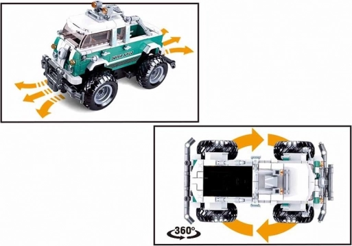 Monstruózus szórakozás 8 éves kortól: építsd meg a zöld‑fehér monster SUV‑ot feltűnő gumiabroncsokkal és részletgazdag off‑road megjelenéssel. A 2,4 GHz‑es RC irányító megbízható, zavarmentes vezérlést biztosít – könnyedén veszed az akadálypályát és bemutatod a 360°‑os fordulatokat. Más márkák készleteivel való kompatibilitásnak köszönhetően saját ötleteiddel bővítheted a modellt.