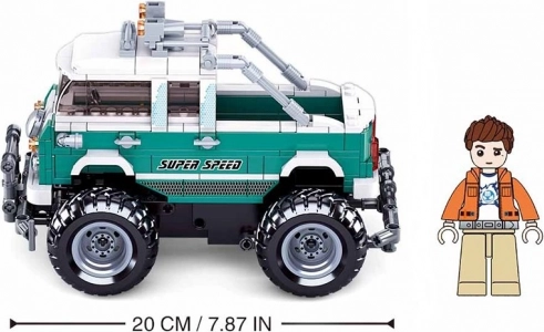 A modell játékos építésre és dinamikus vezetésre készült. Találsz rajta nyitott platót rakományhoz, tetőlámpákat és elöl biztonsági keretet. A figurák (1 db) valósághű formájúak és mozgatható ízületekkel rendelkeznek – a fej és a csuklók forgathatók, a deréknál a figura 360°‑ban elfordul, a lábak pedig járásirányban mozognak.