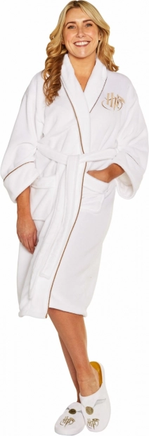 Ez a női Harry Potter köntös tökéletes választás minden mágikus Harry Potter rajongónak. Az Aranycikesz mintázata kiemeli a varázslatos hangulatát ennek az egyedi köntösnek.