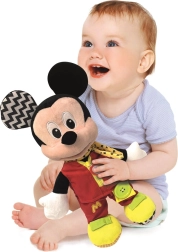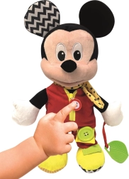 A barátságos Mickey-maszkot egyszerű, kedves funkciókkal és változatos anyagokkal stimulálja az érzékeket, és segíti a gyermek kézügyességének fejlesztését.