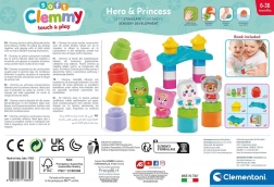 Ez a nagy Soft Clemmy játékszett ideális választás az első építő és szenzoros játékokhoz. A puha kockák könnyen nyomkodhatók, egymásra rakhatók és biztonságosan felfedezhetők, így tökéletes játékok a totyogóknak. Az illusztrált karton könyvecske és a lovag–hercegnő motívumok ösztönzik a történetmesélést és a nyelvi fejlődést.