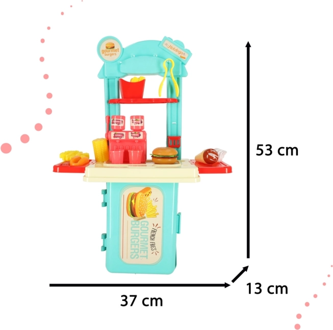 Az egész szett könnyű bőröndben van kompakt módon elhelyezve, így egyszerűen vihető nyaralásra vagy barátokhoz, és garantálja, hogy gyermeke sosem fog unatkozni. A konyha serkenti a fantáziát és az érdeklődést a főzés iránt, ami új hobbik kialakulásához vezethet.