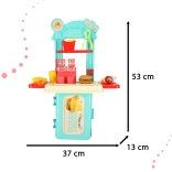 Ez a gyerekkonyha gazdag tartozékkészletet kínál, amely mindent magában foglal a vidám főzőcskézéshez. A konyha kiválóan fejleszti a kreativitást és hosszú órákon át szórakoztatja a gyerekeket. Ideális 3 éves kortól, segít a gyakorlati készségek és a megfelelő viselkedés elsajátításában az ételek elkészítése során.