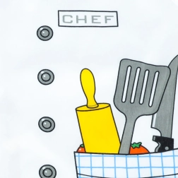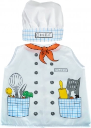 A jelmez fehér kötény formatervezést és szakácssapkát tartalmaz, amely biztosítja, hogy gyermeke igazán szakácsnak érezze magát.