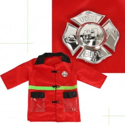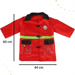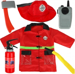 Ezzel a tűzoltó szettel a gyerekek játszhatnak emberek és vagyon megmentésére. A jelmez tartalmaz egy piros kabátot fényvisszaverő elemekkel, tűzoltó kalapot, rádiót, tűzoltó készüléket, baltát és további kiegészítőket.