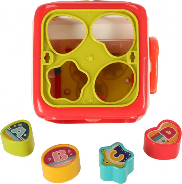 - A kockából és négy blokkból áll, amelyek támogatják az alak- és színfelismerést.