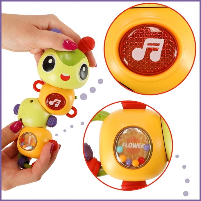 Ez a színes hernyó lehetővé teszi a gyerekeknek, hogy felfedezzék a világot boldog dallamok és fényhatások által.