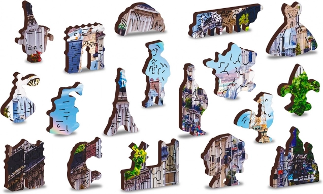 Fa puzzle Mozgalmas Párizs a WOODEN CITY-től egyedi élményt nyújt különleges alakú darabokkal és kétoldalas dizájnnal. Ideális kihíváskedvelőknek és környezetbarát termékek rajongóinak.