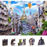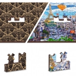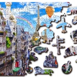 A Fa puzzle Mozgalmas Párizs a WOODEN CITY-től különlegessége kétoldalas kialakítása és speciálisan formázott darabjai, amelyek az összerakás során életre keltik a teljes jelenetet. Az összerakás nehezebb a különböző alakú darabok miatt, de egyben szórakoztatóbb is. Igazi kihívást jelent a tapasztalt puzzle-rajongóknak.
