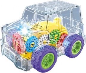 Ez a szórakoztató autócska ideális játék azoknak a gyerekeknek, akik imádják az akciódús utazásokat. Az átlátszó dizájnnak köszönhetően a gyerekek láthatják a belső mechanizmusokat mozgás közben, ami rendkívül lenyűgöző. Az autócska gombbal van felszerelve a fények és hangok aktiválásához, ami még realisztikusabbá és szórakoztatóbbá teszi a játékot.