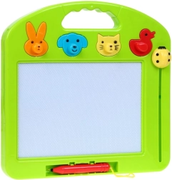 A gyerekeket 4 nagy állatos nyomda (nyuszi, kutyus, cicus, kiskacsa) is megörvendezteti, amelyek még izgalmasabbá teszik az alkotást. A rajzoló toll praktikus zsinóron nem tűnik el játék közben sem. A tábla úgy lett tervezve, hogy egyszerre fejlessze a képzeletet, a koncentrációt és a kéz–szem koordinációt.
