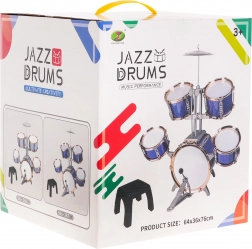 A csomag tartalma: 5 dob, fém cintányér, 2 ütő és szék – a gyermek az összeszerelés után azonnal játszhat.