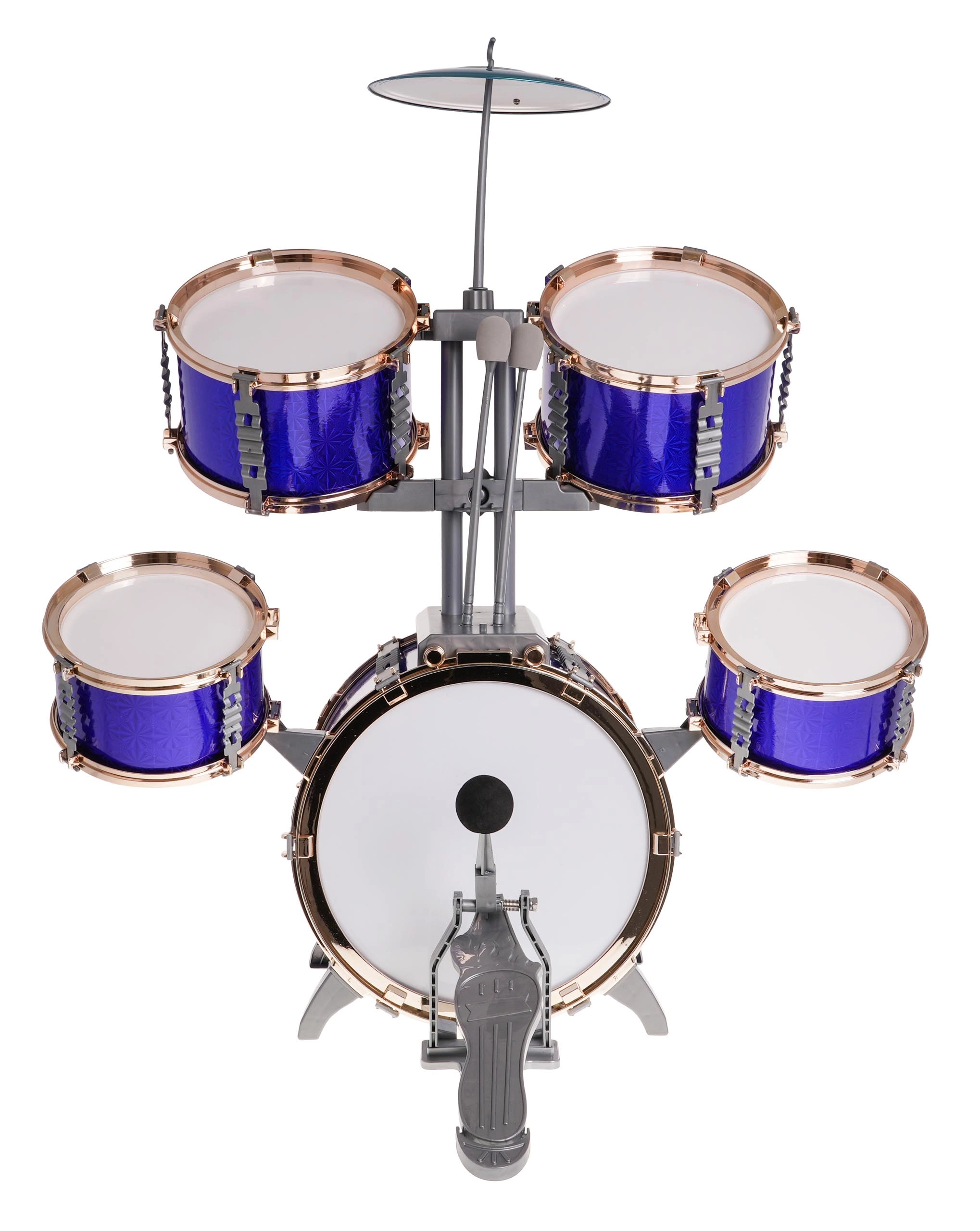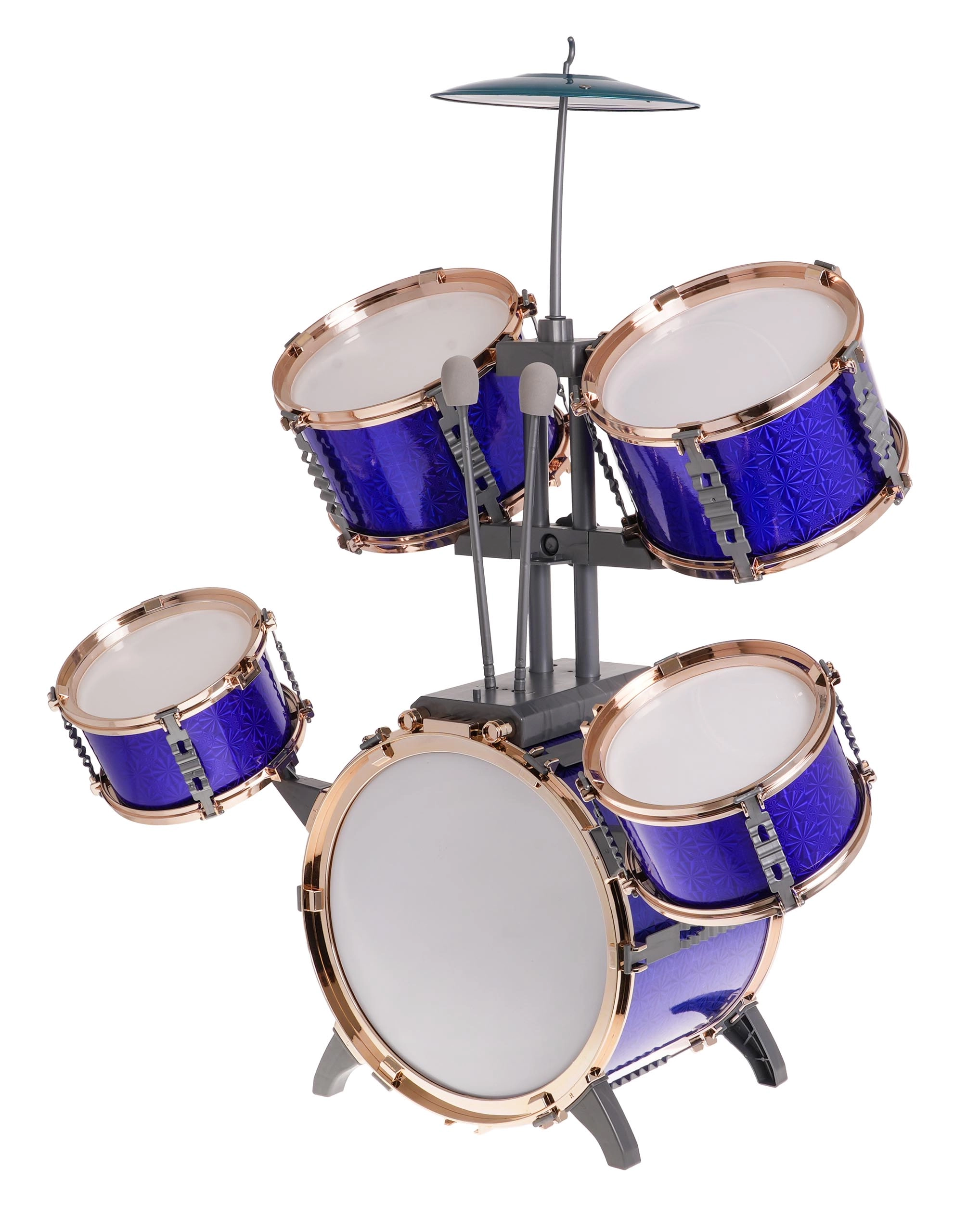 A nagy, kék színű gyerek dobfelszerelés 3 éves kortól játékos belépőt kínál a ritmus világába. Tartalmaz 5 dobot, fém cintányért, 2 ütőt és egy széket. A stabil felépítés és a gyerekekhez igazított méretek támogatják a koordináció fejlesztését, a ritmusérzéket és a kreatív játékot.
