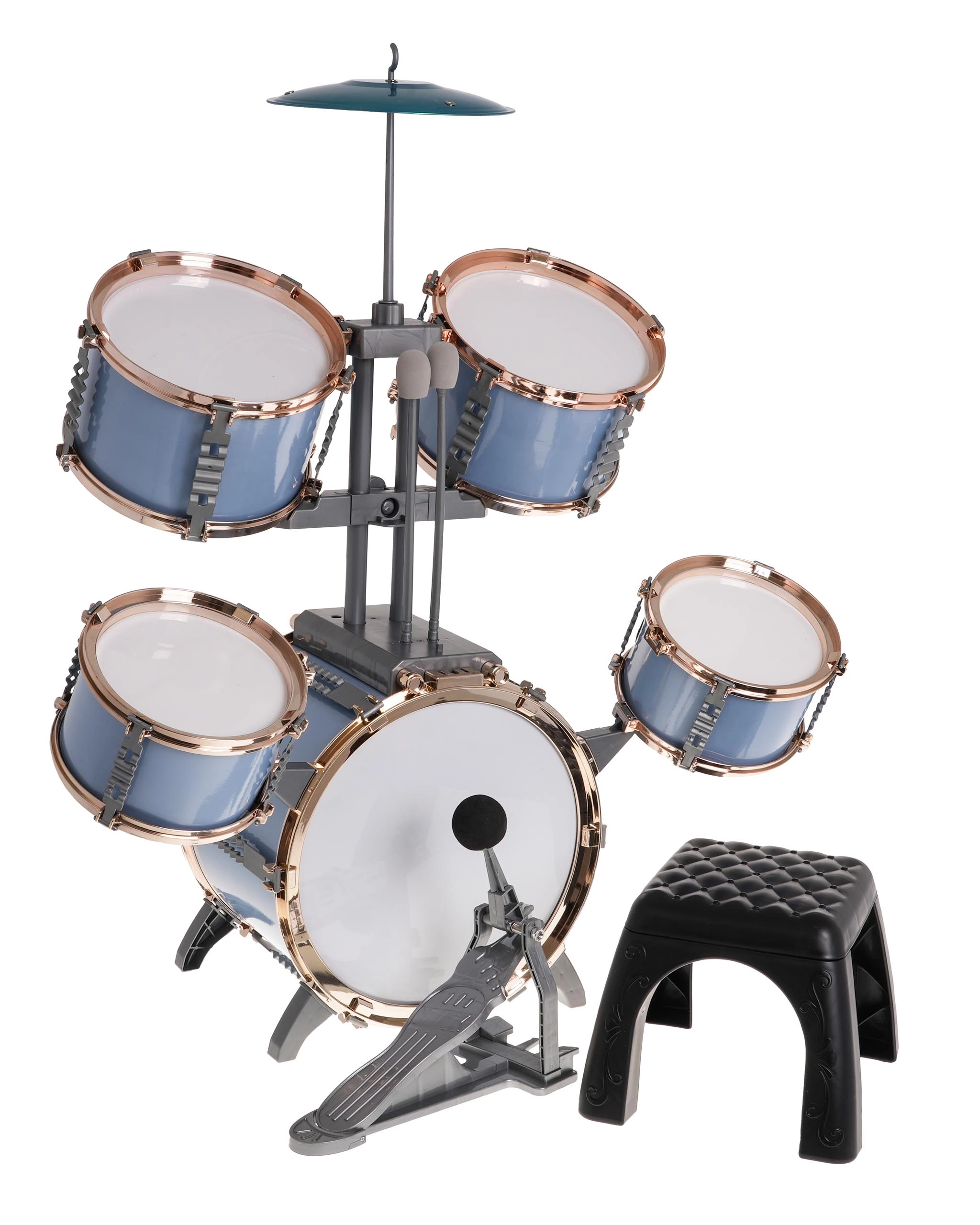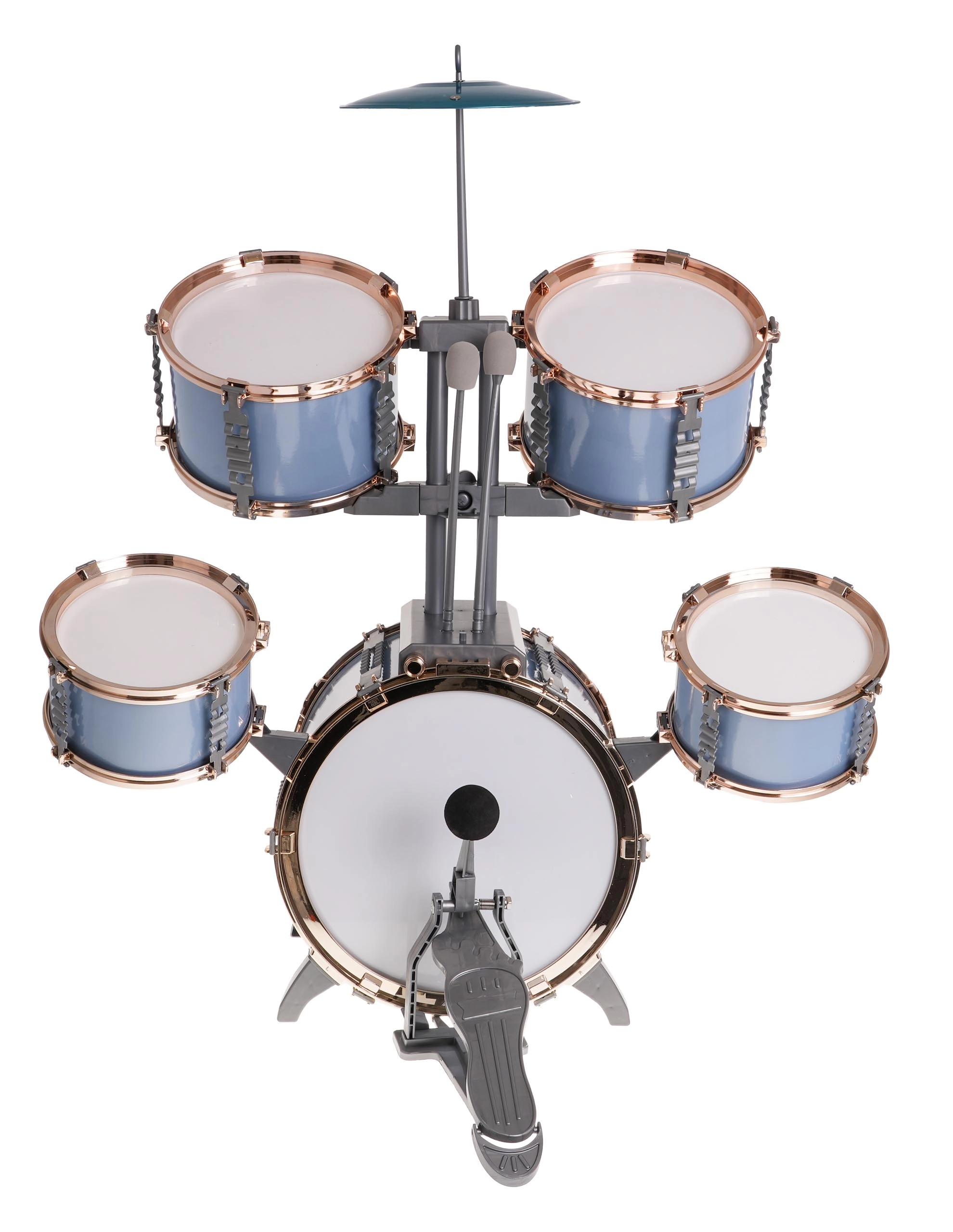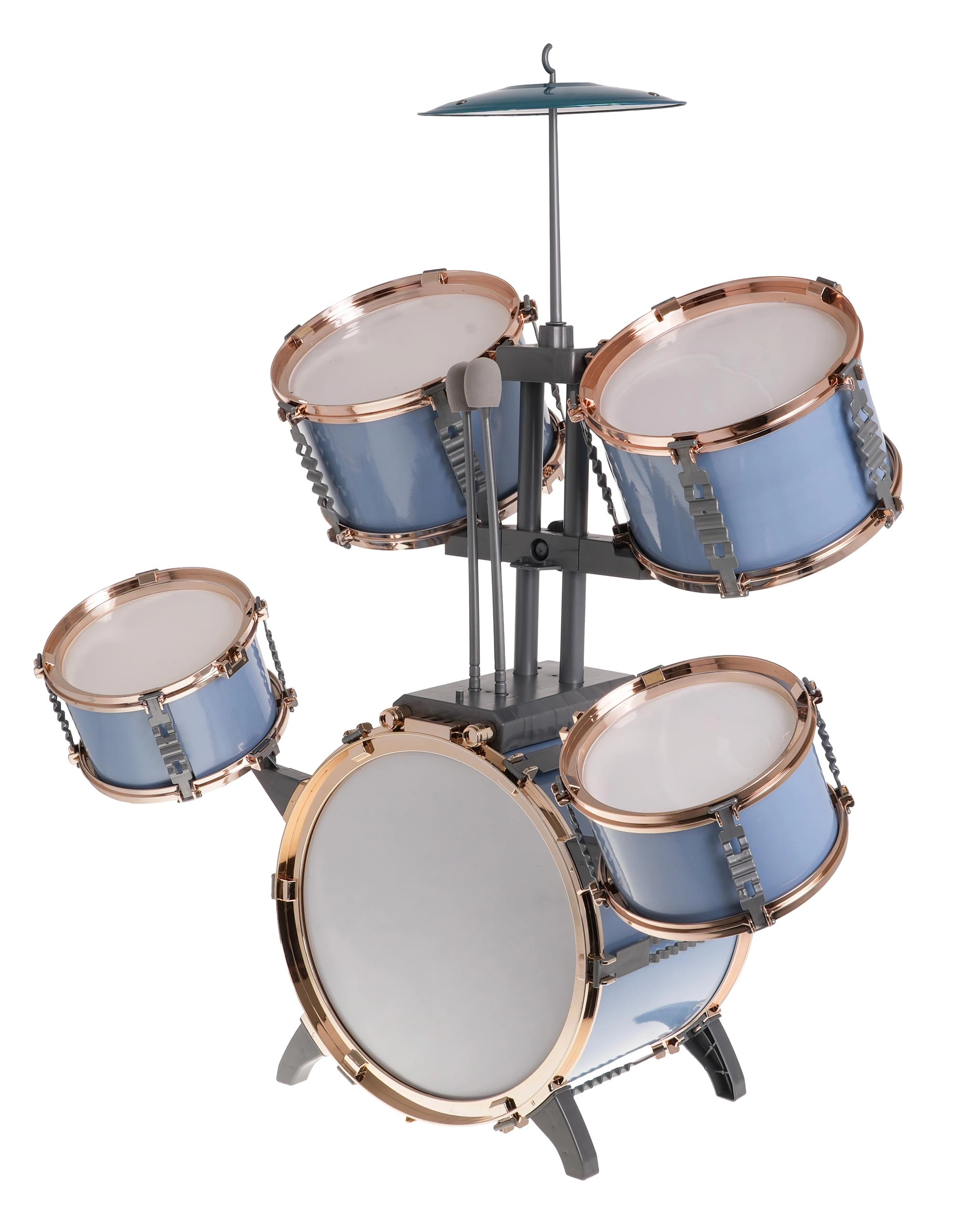 Ez az ötrészes gyermek ütőhangszer-szett világoskék kivitelben remek választás a zenei ismerkedéshez. Valódi dobélményt kínál, beleértve a pedálos nagy dobot, két középső és két kisdobot, valamint a fémből készült, tisztán szóló cintányért.