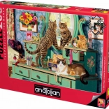 Stílusos puzzle cicás fésztükör asztal motívummal, amely örömet szerez minden macska- és kirakórajongónak. 260 darabot tartalmaz, összeállítva a mérete kb. 48 × 33 cm. A ANATOLIAN gyártó hiányzó elem pótlási szolgáltatást kínál (a gyártási tételszám igazolása és a motívum elérhetősége esetén).