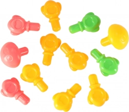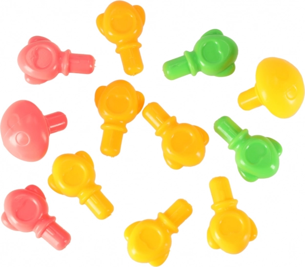 A színes tüskék segítik a színfelismerést és a válogatást. Néhány nyíláson számjegyek vannak, amelyek motiválják az első számolási próbálkozásokat.