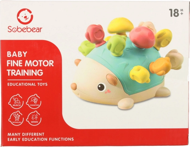 A tüskék be- és kiszedése fejleszti a fogást és a kéz–szem koordinációt. Ideális első fejlesztő játék, amely egyszerre szórakoztat és fejleszti a készségeket.