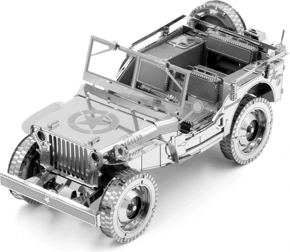 Izgalmas kihívás, az összeszerelés élménye és lenyűgöző végeredmény – ezek a METAL EARTH modellek! Az ICONX prémium sorozat modellje exkluzív díszdobozos csomagolásban még kifinomultabb részletkidolgozással fog elbűvölni! A METAL EARTH ICONX 3D puzzle összeállítása türelmet és ügyes kezeket igényel. A végeredmény azonban bőven kárpótol a befektetett erőfeszítésért! A miniatűr replikák különösen hatásos és figyelemfelkeltő díszei lehetnek nemcsak otthon, hanem irodában vagy iskolában is. A 21 x 11 cm-es acél lapokból, amelyek a világ nevezetességeinek, híres közlekedési eszközöknek, hangszereknek vagy állatoknak az elemeit tartalmazzák, a kezeid alatt részletgazdag, lenyűgöző modellek születnek. A METAL EARTH ICONX 3D puzzle autentikus megjelenését a részletes lézergravírozás biztosítja. A csomag 2 acéllapot, csipeszt és összeállítási útmutatót tartalmaz. Szerszámok nem részei a csomagnak. MUNKAFOLYAMAT: Az egyes alkatrészeket vedd ki a fém lapokból, szükség esetén használj kis csípőfogót (nem része a csomagnak). Az elemeket zárakkal kell egymáshoz rögzíteni, amelyeket egy fül (kampó) és egy nyílás alkot. A kampót kis, vékony fogóval (nem része a csomagnak) hajlítsd meg, és fokozatosan rögzíts minden zárat, míg egy rendkívül élethű mestermű nem készül! Ajánlott életkor: 14 éves kortól. A Jeep Willys MB egy amerikai könnyű haszonjármű volt, amely a második világháború idején készült. A „jeep” elnevezés világszerte a terepjáró szinonimájává vált. Ez a legendás jármű talán a második világháború legismertebb járműve volt. Több a Wikipédián Méret az összeszerelés után: kb. 9,7 x 3,8 x 4 cm