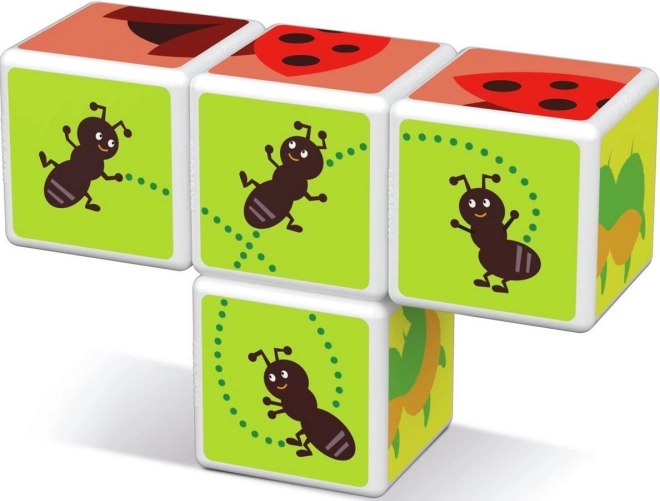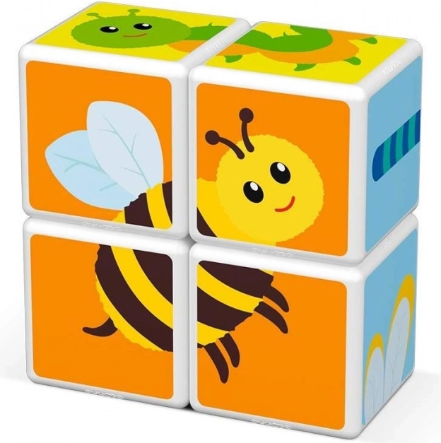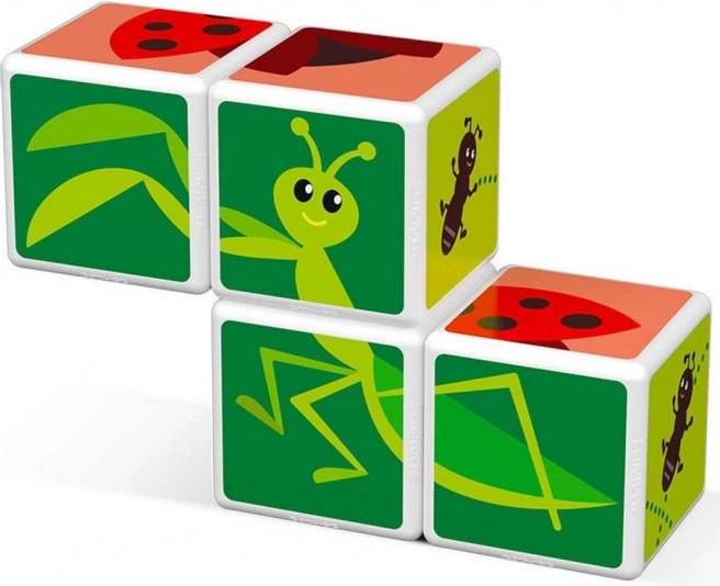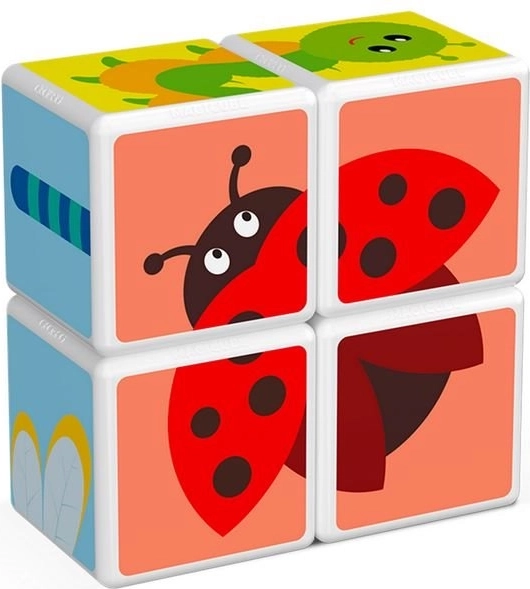 Műanyag kockák rovar motívumokkal. A kockák mágnesesek, így térbeli objektumok építhetők belőlük. A gyerekek építhetnek katicabogarat, hernyót, szitakötőt, hangyát, méhet és sz Heget vagy akár kéményt és karámot az állatoknak. Bővítse a játék lehetőségeit további GEOMAG Magicube készletek megvásárlásával. A Magicube építőkockák fejlesztik a koordinációt és a finommotorikát, ösztönzik a fantáziát és a logikus gondolkodást, valamint mesemondásra motiválnak. A csomag 4 mágneses kockát és 6 kártyát tartalmaz állatok összeállítási javaslataival. Svájcban készült. illusztrációs videó: Geomag Magicube mágneses kockák
