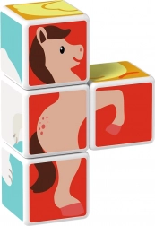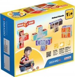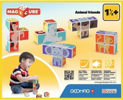 Műanyag kockák állatmotívumokkal. A kockák mágnesesek, így a gyerekek térbeli objektumokat is építhetnek belőlük. Megépíthetnek például jeges kis kutyust, cicát, tyúkocskát, mackót, lovacskát, elefántot, vagy akár kéményt és karámot az állatoknak. Bővítse a játék lehetőségeit további GEOMAG Magicube készletek megvásárlásával. A Magicube gyerekkockák fejlesztik a koordinációt és a finommotorikát, ösztönzik a fantáziát és a logikus gondolkodást, valamint motiválnak történetmesélésre. A csomag 4 mágneses kockát és 6 kártyát tartalmaz állatépítési ötletekkel. Svájcban készült. illusztrációs videó: Geomag Magicube mágneses kockák