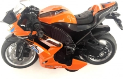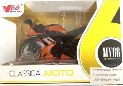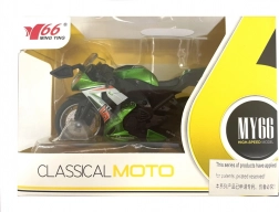 A 1:14 méretarányú motorkerékpárunk ideális játék kicsiknek és nagyoknak, akik szeretik a gyors gépeket. Csak fel kell húzni, és nézni, ahogy a padlón száguld.