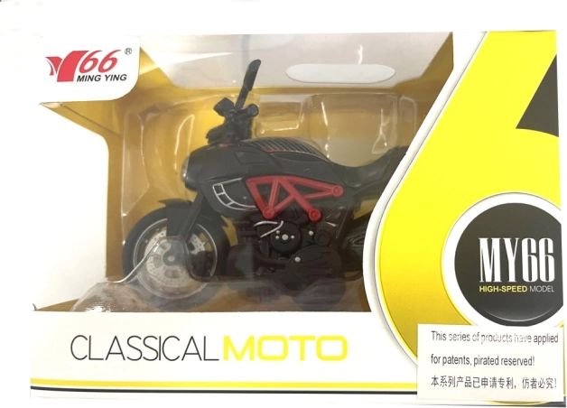 Húzd fel és indulj ezzel a valósághű műanyag motorral 1:14 léptékben. Ideális gyűjtőknek vagy dekorációs elemként.