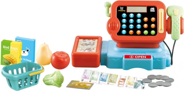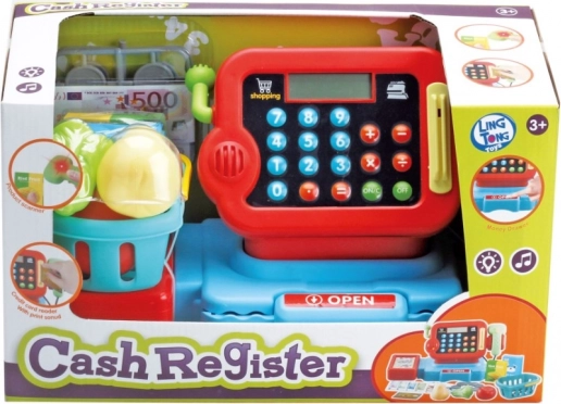 Tartalmaz egy praktikus pénztárfiókot a játékpénz és áruk tárolására.