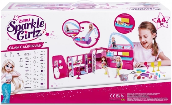 A tetőn csúszdás medence vár az esti csillagleshez, míg a kültéri grill minden megállót piknikké varázsol. A vezető- és utasülés lehajtható, hogy mindenki az asztalhoz ülhessen. Ne felejtsd el a lakóautót Sparkle Girlz matricákkal feldíszíteni, és utazz igazán stílusosan. A baba nem része a csomagnak. Figyelmeztetés: Fulladásveszély – apró részek. 3 éves kor alatt nem ajánlott. Ajánlott életkor: 3+.