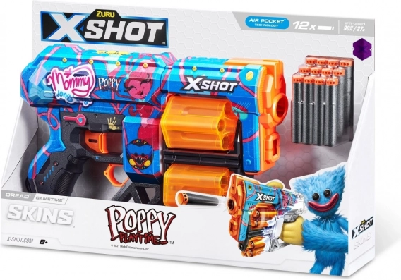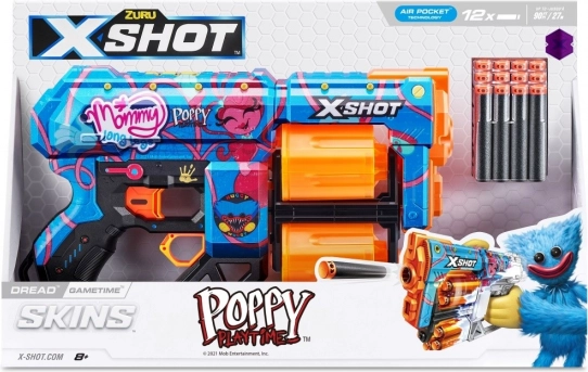 Lépj be a Poppy Playtime világába az X-Shot Skins Dread blasterrel. A nagy teljesítményű mechanikus rendszer egymás után, egyenletesen lövi ki a habnyilakat, míg az átlátszó kamra és a forgódob megkönnyíti a lőszer nyomon követését. A könnyű felépítés, a csúszásmentes markolat és az intuitív elsütőbillentyű pontos és kényelmes kezelést biztosít.
