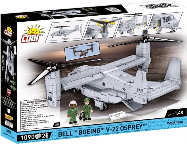 Ez a Bell-Boeing V-22 Osprey repülőgép modell kivételes játék a katonai technika és repülőgép modellek szerelmeseinek. 1090 kockát tartalmaz, amelyek lehetővé teszik egy részletes és valósághű másolat létrehozását erről a futurisztikus többcélú gépről. Forgó hajtási rendszere lehetővé teszi a motoros gondolák forgatható elhelyezését, ami biztosítja a függőleges felszállást és az azt követő vízszintes repülésbe való átlépést.