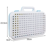 Kreatív mozaikafúró egy szórakoztató és oktató játék gyerekeknek. A készlet 196 darabot tartalmaz, amelyek praktikus bőröndben találhatók, így könnyíti a szállítást és tárolást. A változatos színeknek és formáknak köszönhetően a gyerekek saját eredeti mintákat hozhatnak létre, fejlesztve egyúttal a finommotorikus képességeiket és logikai gondolkodásukat.
