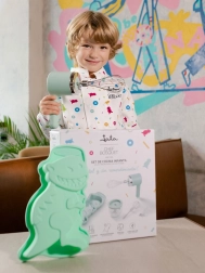 Ez a játékos és praktikus gyerek konyhai szett három nélkülözhetetlen segítőt egyesít. A habverő és az aprító könnyű teste kényelmes fogást biztosít, míg az USB-s töltés megkönnyíti a vezeték nélküli használatot. A szilikon forma rugalmas, tapadásmentes, és sütésre valamint fagyasztásra is alkalmas.