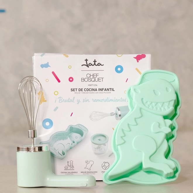 Könnyítse meg a gyerekek első lépéseit a konyhában a Jata 3 az 1-ben multifunkciós szettjével. Tartalmaz egy könnyű akku kézi habverőt 5 fokozattal, egy 300 ml-es aprítót és egy tapadásmentes szilikon formát dinoszaurusz alakban. A szett USB-kábellel (a csomag része) egyszerűen tölthető, a kis súlyt és az egyszerű kezelhetőséget a gyerekkezek értékelni fogják.