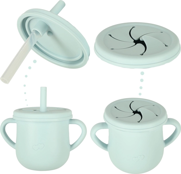 Minden elem sima élekkel van ellátva, evőeszközeik pedig kicsi kezekhez igazított méretben készültek, így tökéletesek az önálló étkezés elsajátításához. Az étkészlet BPA-mentes szilikonból készült, így biztonságos a kisgyermekek számára. A szilikon tisztítása egyszerű: elég enyhe tisztítószerrel átmosni, vízzel leöblíteni és szárítani.