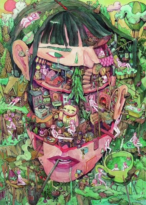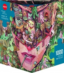 Merüljön el a fantázia világában a Gondolatok otthona puzzle-lel a HEYE-től. Marija Tiurina részletgazdag illusztrációja rengeteg apró történetet és ötletes motívumot kínál, amelyeknek köszönhetően az összerakás szórakoztató, és minden darab a nagyobb képbe illeszkedik. Ideális a képzőművészeti stílus kedvelőinek, akik esztétikai élményt és kihívást keresnek.