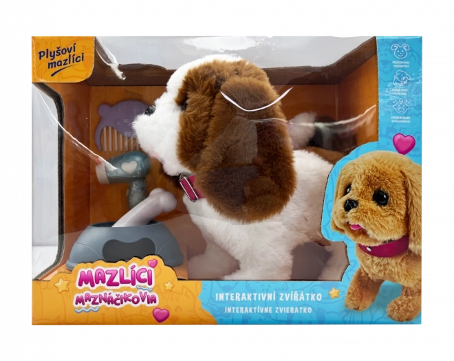 Az aranyos, barna-fehér Ťapka a Mazlíci sorozatból egy interaktív plüss barát, aki szórakoztatja a gyerekeket és még tanít is. Jár, hangokat ad ki és csóválja a farkát. A csomagban egy fésű, egy tálka és egy csontocska található a játékos gondoskodáshoz, valamint a képzelőerő, az empátia és a finommotorika fejlesztéséhez.