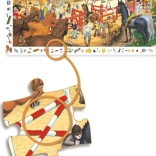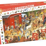 Ez a lebilincselő, lovas témájú keresőpuzzle dupla örömet nyújt a gyerekeknek: először kirakják a 200 darabból álló, részletgazdag jelenetet, majd megkeresik a keretben ábrázolt tárgyakat. A masszív daraboknak köszönhetően a kirakás gördülékeny, a 61 × 38 cm-es végeredmény pedig szépen érvényesül.
