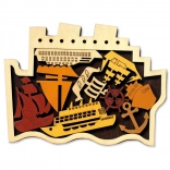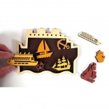 Színes fa elemek hajó, horgony és kormány formában, amelyeket pontosan meghatározott térbe kell illeszteni. Kiváló a logika és a finommotorika fejlesztésére.