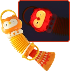 Ezzel a játékharmonika segítségével a gyerekek órákon át szórakozhatnak, miközben fejlesztik motoros és zenei képességeiket. Fel van szerelve világítással és hangszóróval, melyet az ügyes kis művész nagyra becsül. Részét képezi egy susogó farok is, amely leköti a gyerekeket és támogatja tapintási érzékelésüket.