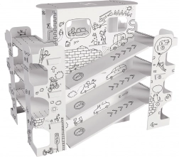 A professzionális, éles fekete nyomat ideális színes ceruzákhoz, filcekhez, markerekhez és festékekhez. A karton jól felszívja a nedvességet, nem gyűrődik és nem üt át. A nyitott terek, rámpák és polcok kreativitásra, parkolós szerepjátékra és a gyermeki fantázia fejlesztésére ösztönöznek.