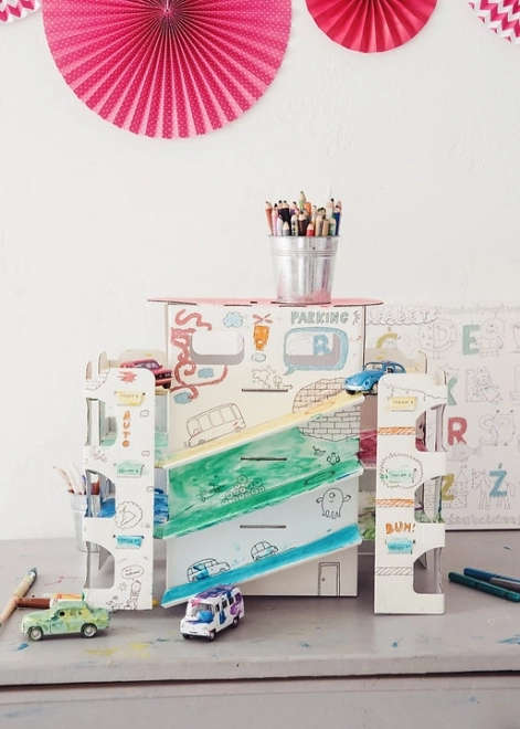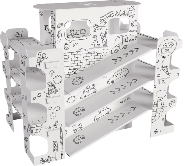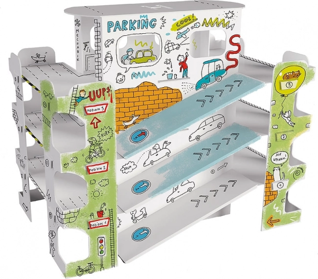 Fedezd fel a kreatív játékot, amely ötvözi a 3D kifestőt és a többszintes parkolóházat kisautókhoz. Tartós hullámkarton fehér borítókartonnal, könnyű összeállítás ragasztó és olló nélkül, mozgó elemek és nyitott terek garantálják a hosszú órákon át tartó szórakozást, miközben fejlesztik a finommotorikát és a képzelőerőt.