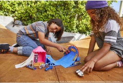 Lépjen be a skateboard világába a Hot Wheels Szórakoztató skatepark készlettel, amelyet Tony Hawk legendával együttműködve terveztek. Ez a készlet rámpákkal, korlátokkal, félpályákkal és gombokkal rendelkezik az ösztönző zene aktiválásához. Ideális az elképesztő ujj trükkök végrehajtásához, tartalmaz továbbá néhány levehető cipőt az autentikus élmény érdekében. Kibővítheti skateparkját további szettek hozzáadásával és hatalmas területet hozhat létre végtelen játszadozáshoz. Az összes rész külön kapható, és színekben valamint mintákban eltérhetnek.