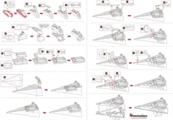 Vedd ki az egyes alkatrészeket a fémlapokból; szükség esetén használj kis oldalcsípő fogót (nem tartozék). Az alkatrészeket reteszekkel lehet összekapcsolni, amelyeket egy fül (bütyök) és egy nyílás alkot. A bütyköt kis, vékony fogóval (nem tartozék) hajlítsd meg, és fokozatosan zárd mindegyik reteszt, amíg egy rendkívül élethű mestermű nem készül!