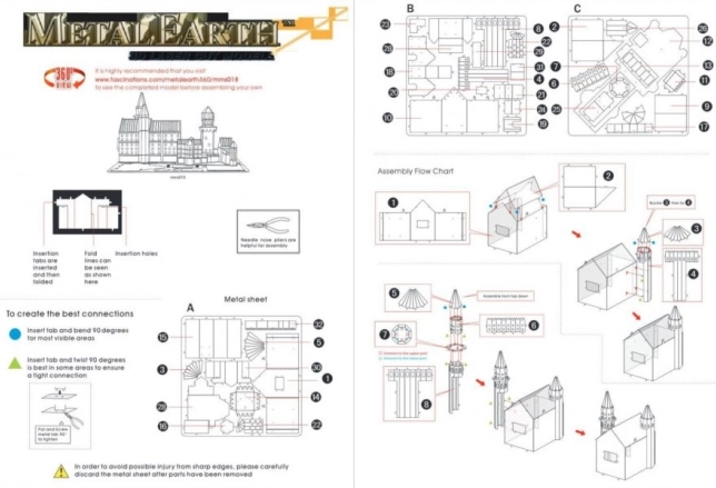 Tapasztalja meg az izgalmat a 3D puzzle Neuschwanstein kastély a Metal Earth kollekcióból. Ez a modell lenyűgöző és dekoratív darab, amely elbűvöl minden történelemrajongót. Részletesen kidolgozott acéllapokból készült, amelyek könnyen összepattinthatók. A csomagolás 3 acéllapot és útmutatót tartalmaz, de a szerszámok nem részei a csomagnak.