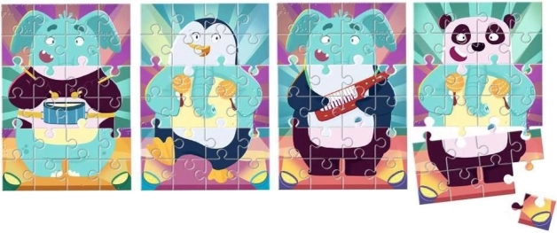 Élvezd az okos kirakást és a darabkák vidám keverését: a csomagban 3 gyerek kirakó található, mindegyik 24 darabból áll. A darabok a három kép között szabadon kombinálhatók, így mókás állatkák hozhatók létre. Az összeállított kép mérete kb. 18 × 26 cm.