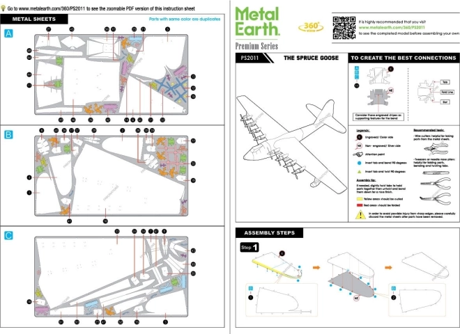 Az összeszerelés ragasztó nélkül történik – az alkatrészek zárakkal és meghajlított fülekkel illeszkednek. A kényelmes építéshez ajánlott finom csipesz és kis oldófogó (nem tartozék). Elkészülte után egy stabil, fém modell lesz a tiéd impozáns fesztávolsággal, amely kiemel bármelyik enteriőrt.